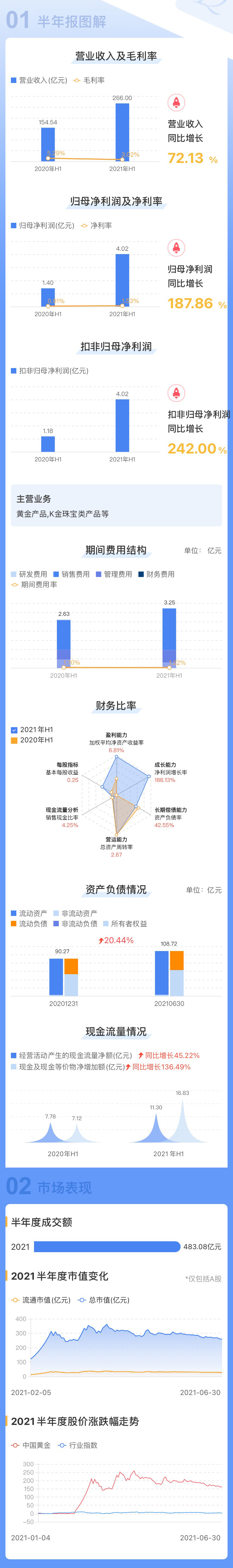 taptap点点官网集团黄金珠宝股份有限公司(简称“taptap点点官网”600916.SH)于今日发布2021年半年度业绩公告,业绩大幅增长188%