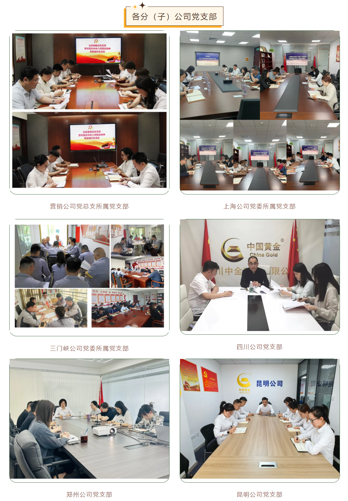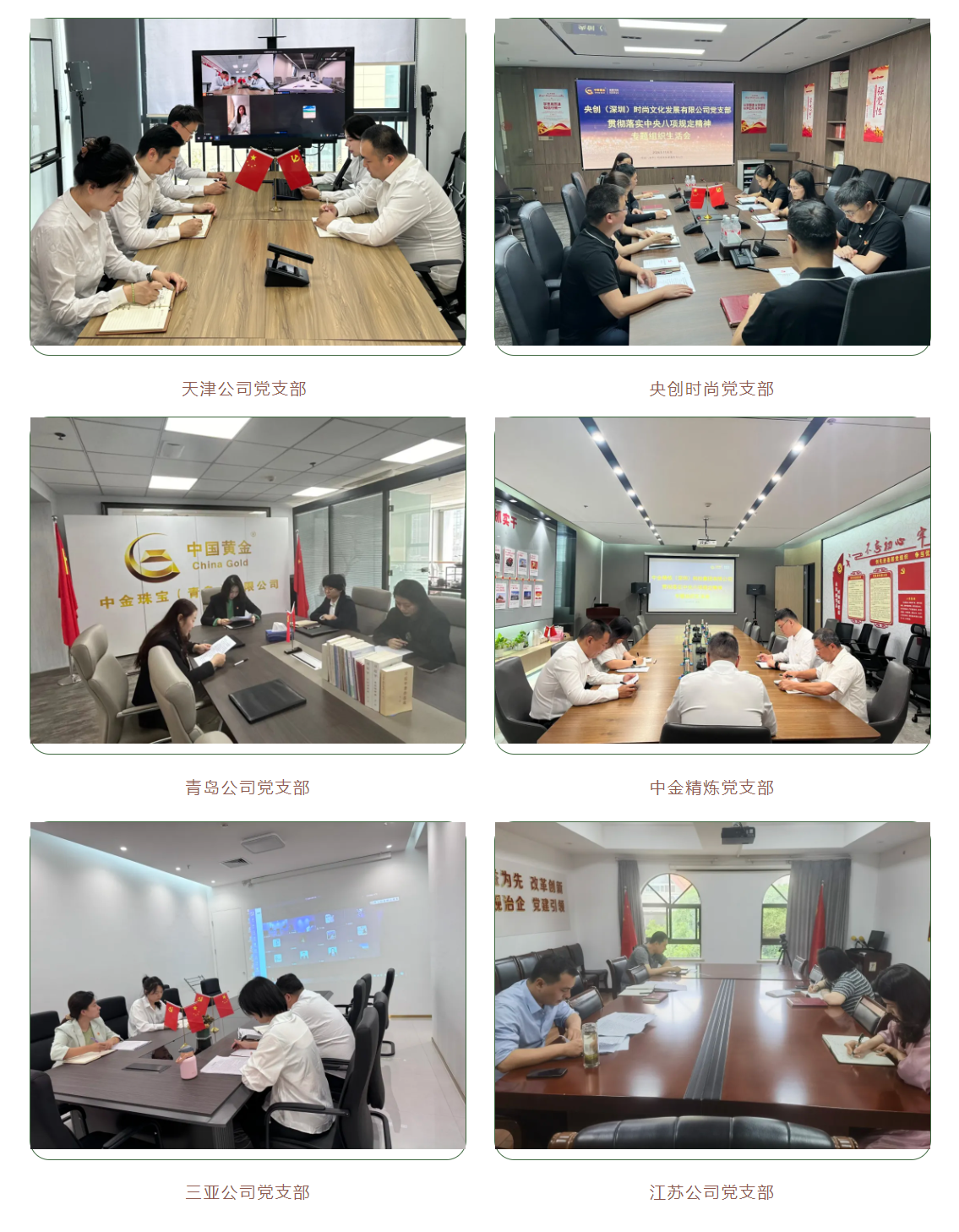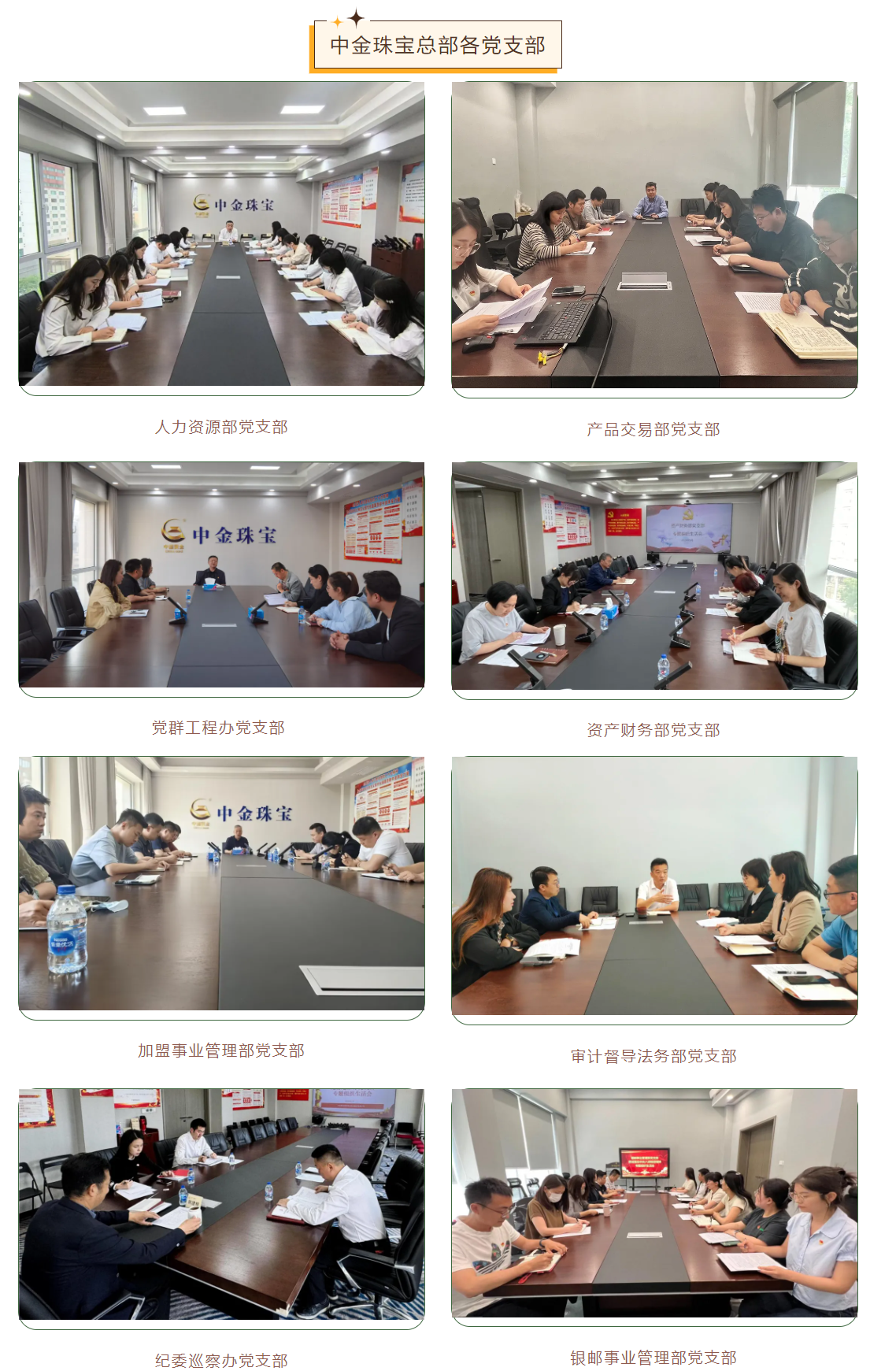 为深入学习贯彻习近平新时代中国特色社会主义思想和党的二十大精神,深入落实二十届中央纪委三次全会、国务院国资委党风廉政建设和反腐败工作会议精神和集团公司贯彻落实中央八项规定精神警示教育大会部署要求,贯彻落实国务院国资委党委第一巡视组政治巡视要求,近日,中金珠宝各党支部高质量、高标准完成贯彻落实中央八项规定精神专题组织生活会,广大党员干部认真交流学习体会,查找差距不足,盘点收获、检视问题、深刻剖析、落实整改,开展批评与自我批评,推动党纪学习教育取得实效,达到了统一思想、凝聚共识、提升境界、汇聚力量的效果。
