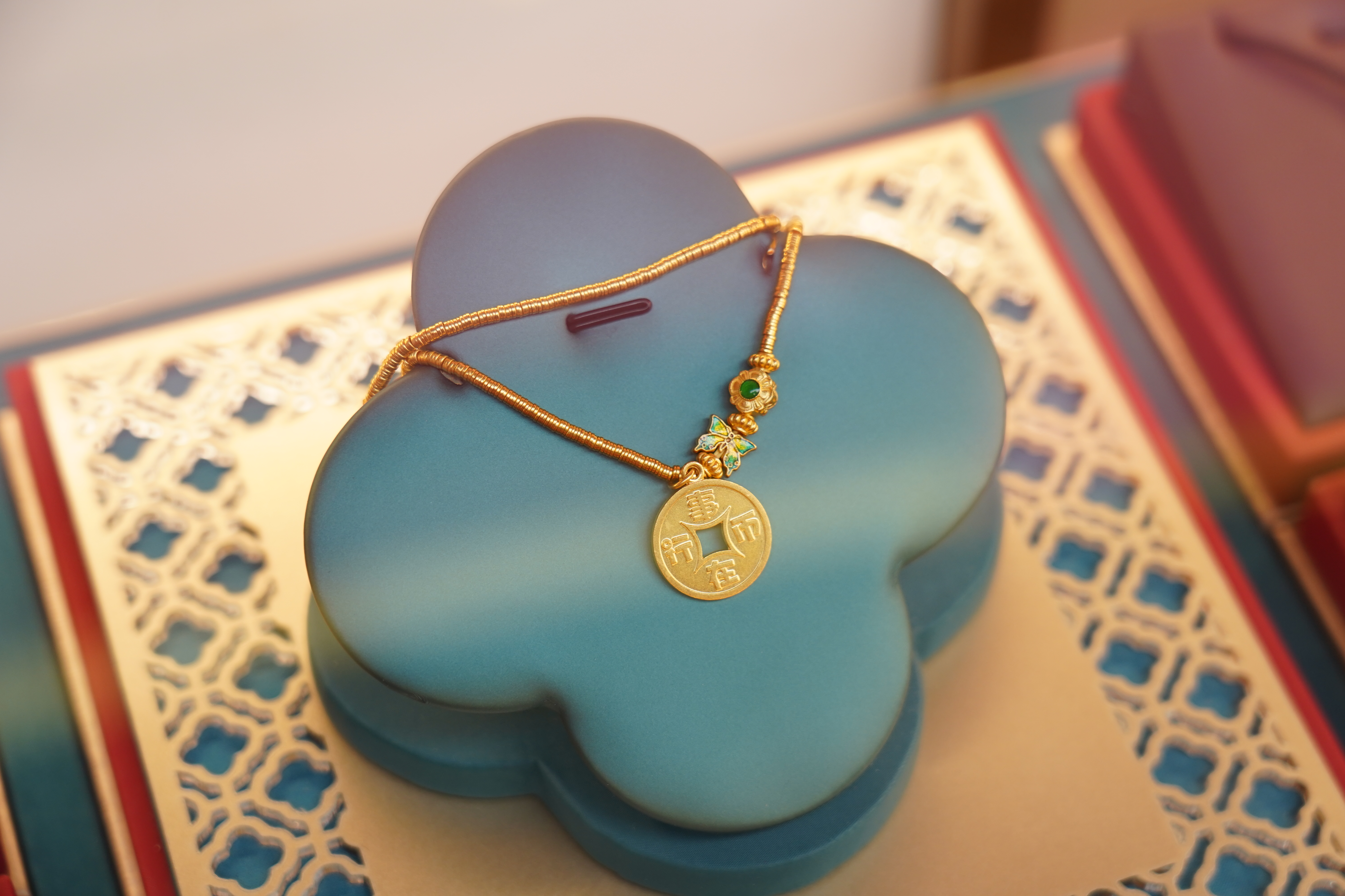 国潮精品,国风美陈。通过“有钱花”系列,中金珠宝将“恭贺新禧”“恭喜发财”的吉祥寓意融入现代审美,让每一位参与者都感受到新年的喜悦;以黄金为笔,勾勒千年传承,承载中华民族深厚文化底蕴,传递对幸福的向往和追求,守护人们美好生活。