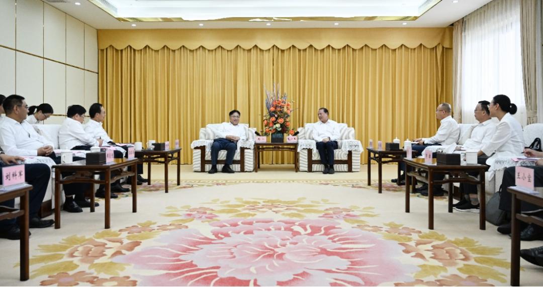 签约前,冯飞、刘小明会见周洲、殷长波一行,双方围绕促进产业升级、推动项目落地、文旅融合发展、深海资源开发利用、人才交流等领域合作进行探讨交流。