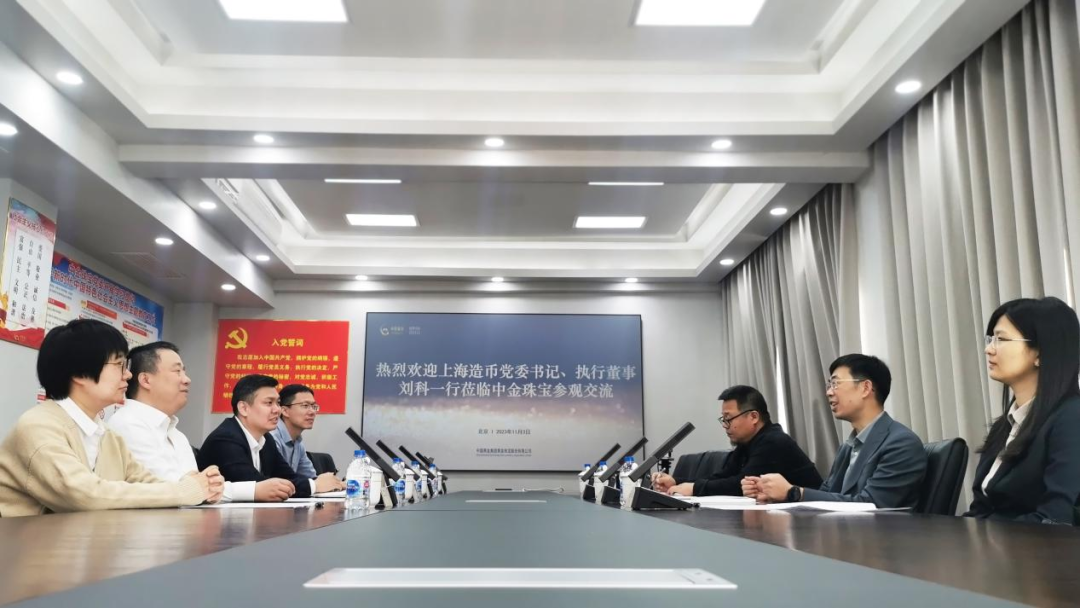 11月3日,中金珠宝党委书记、董事长刘科军在京会见了上海造币有限公司党委书记、执行董事刘科一行,双方就开展战略合作、产品联合研发等进行了深入广泛的交流。中金珠宝党委副书记、总经理刘炜明参加会见。